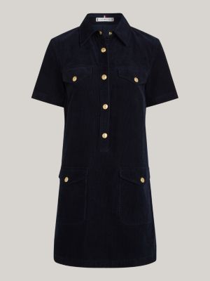 Corduroy mini overhemdjurk met korte mouwen Blauw Tommy Hilfiger