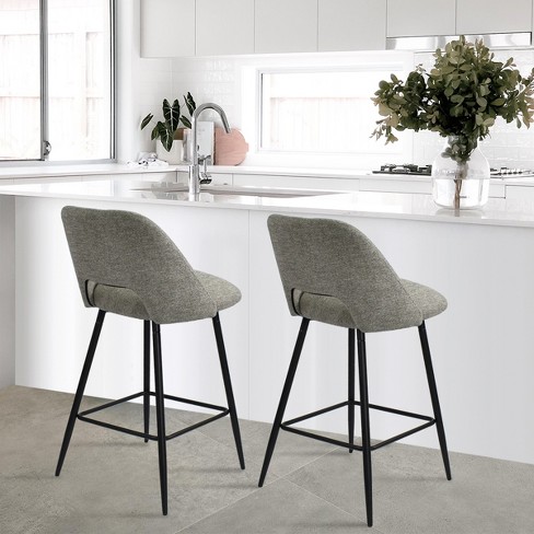 Edwin 26.5 Inches Light Gray Fabric Counter Height Stools armless Upholstered Counter Stools With Backs Set Of 2 black Metal Frames the Pop Home Target