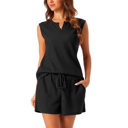 • Cheibear Women s Waffle Knit Sleeveless Tank Top And Shorts Pajama Sets Black X large Target