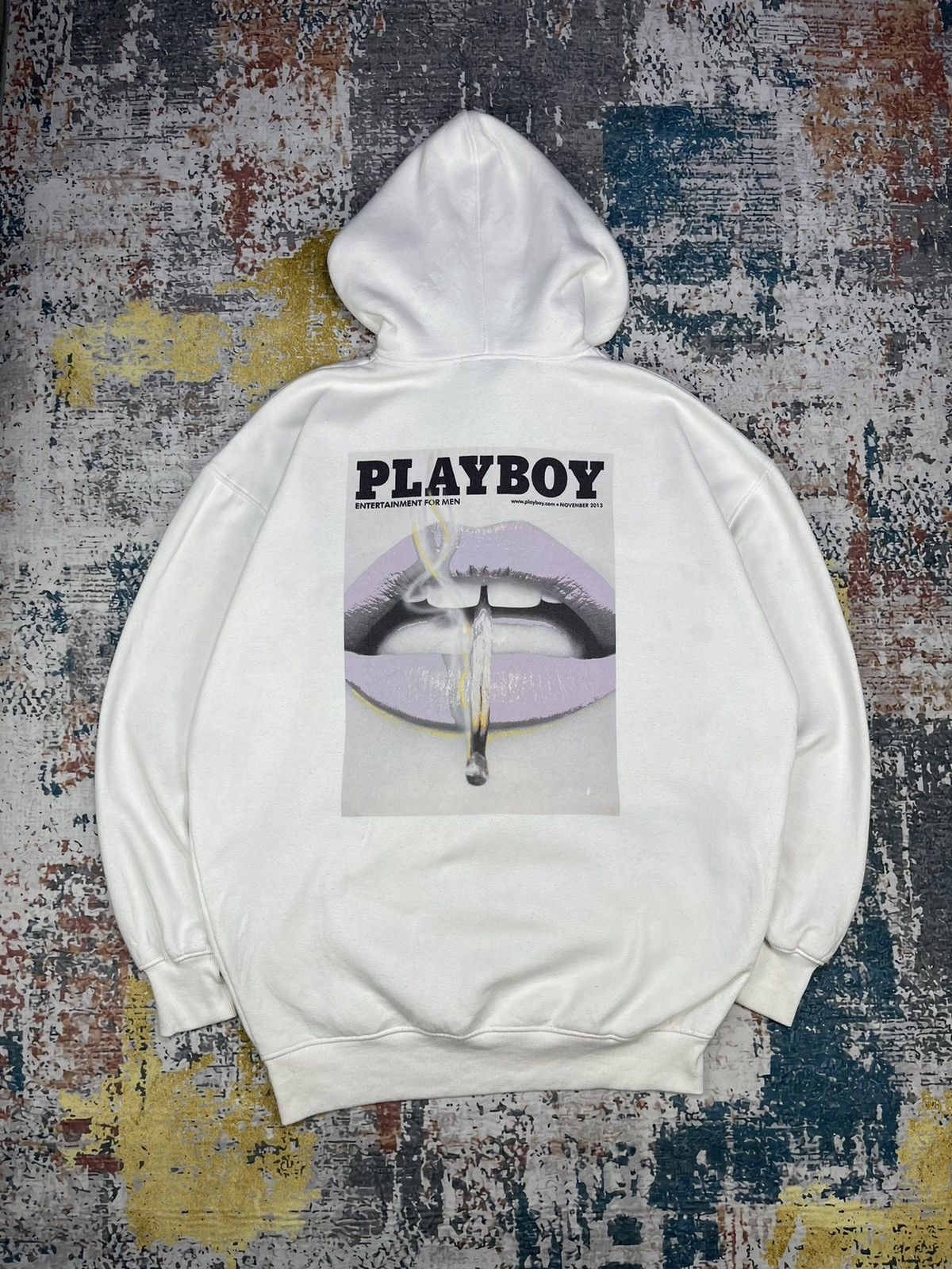 Product Name: Playboy x missguided white magazine print oversized hoodi shop