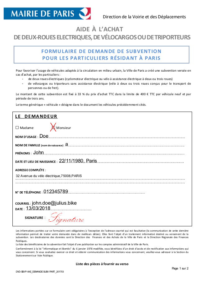 Product Name: Demande de subvention velo electrique paris shop